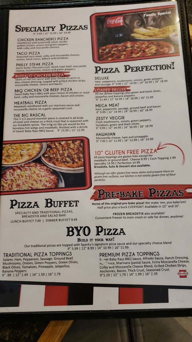 For those seeking lighter fare, Spanky's offers half salads, a thoughtful addition to the menu. With friendly staff ensuring quick service and a community-focused approach, your visit promises to be both enjoyable and satisfying. Whether dining in or taking out, Spanky’s is a must-try for pizza enthusiasts!